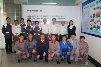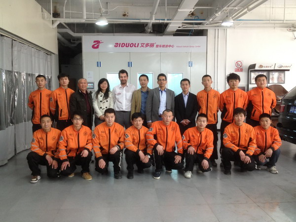 本司訊:2013年4月北京晴空萬(wàn)里,龍神公司特邀英國(guó)專家一行五人,來(lái)到了北京車爵士進(jìn)行汽車噴涂遮蔽技術(shù)交流。首先公司一行了解車爵士的汽車噴涂情況及詢問(wèn)了使用的遮蔽工具情況。隨后英國(guó)專家針對(duì)在汽車噴漆時(shí)難噴涂的車門(mén)縫隙、玻璃死角等地方的專業(yè)遮蔽工具的演示。車縫泡沫膠:用于車身所有縫隙的遮蔽,有效隔離及遮蔽漆霧噴入車縫里。