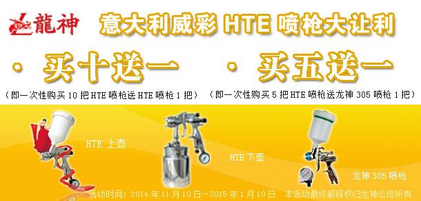 1、買十送一(即一次購買十把HTE噴槍送一把HTE噴槍)